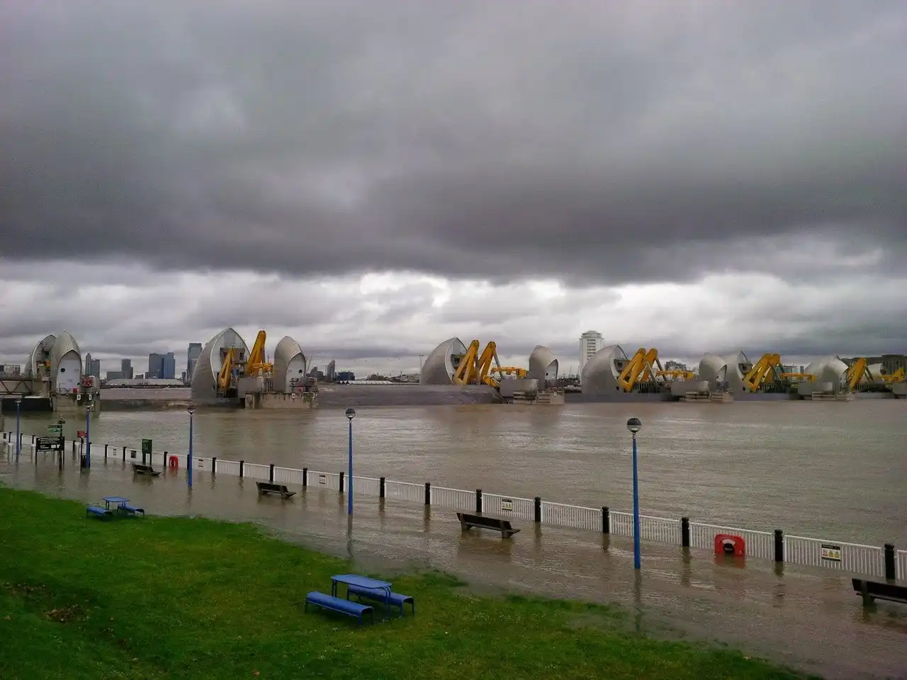 В декабре министерство по защите окружающей среды опубликовало схематическое изображение того, как выглядел бы Лондон, если бы уровень моря продолжил подниматься, и при этом не было бы барьеров. под водой оказались бы здание Парламента, стадион Арена О2, Тауэрский мост, а также районы Саутуарк, Собачий остров, Уайтчепел и Вест Хэм. Заградительный барьер Темзы был построен в 1982 году в западной части столицы, в районе Вулвич. Его функция — защищать центр Лондона площадью 48 кв. миль (125 кв. км.) от наводнений, вызванных приливной волной.