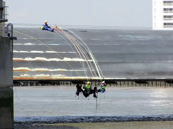 - Промежуточное положение - обеспечивает проход контролируемого количества воды под шлюзом в Темзу