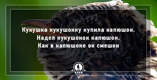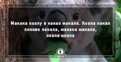 Сможете повторить: Макака коалу в какао макала, а кукушка кукукшонку купила капюшон, пока галдят грачата на галчат.