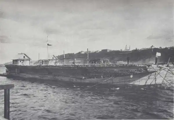 Интересно, что и палуба “беляны” тоже представляла собой не что иное, как груз, а настилалась либо из теса, либо из пиленых досок и бывала настолько велика, что походила на палубу современного авианосца. На ней ставили 2-4 ворота для подъема больших якорей и натяжения удерживающих лот канатов. А вот ближе к корме на “беляне” ради равновесия устанавливали по две небольшие избушки — «казенки», служившие местом обитания команды судна. Между крышами избушек перекидывался высокий поперечный мостик с резной будкой посредине, в которой находился лоцман.