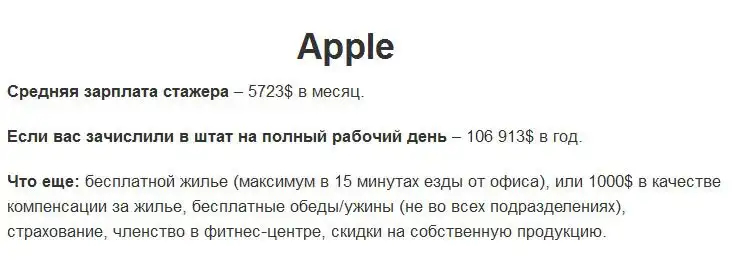 Если вы получаете образование в области инженерии или программирования и неплохо разбираетесь в профилирующих предметах, то советуем всеми возможными методами попасть на стажировку в одну из крупнейших IT-компаний, которые не скупятся на приличные зарплаты не только для своих работников, но и для стажеров. Кроме того большинство этих компаний предлагает множество дополнительных привилегий.