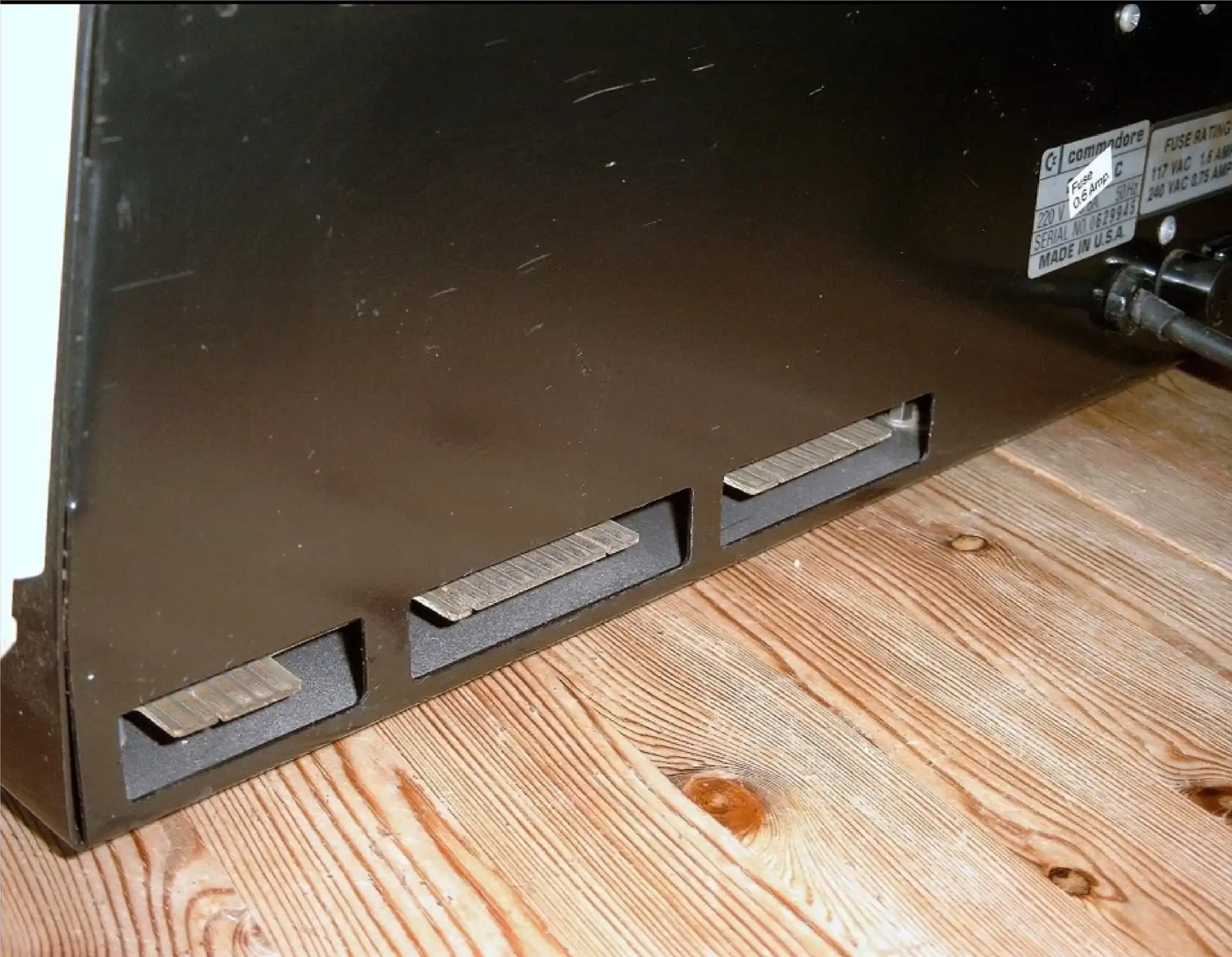 Компьютер собран в прочном белом металлическом корпусе. В ранних моделях в качестве внешнего накопителя используется кассетный привод (Datasette), который располагается на передней части корпуса.