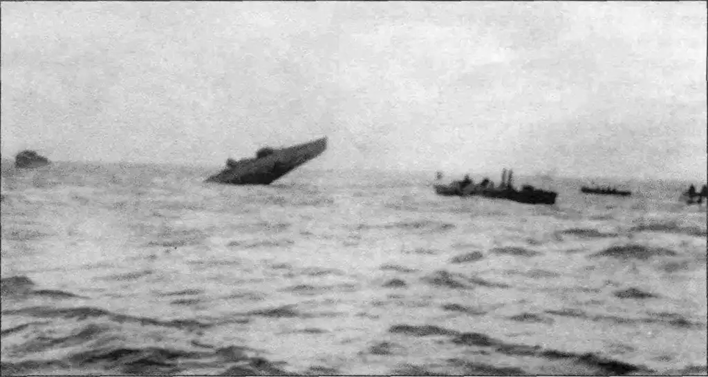 Японские корабли подошли к стоящему миноносцу на расстояние 70-80 м и стали расстреливать его в упор.