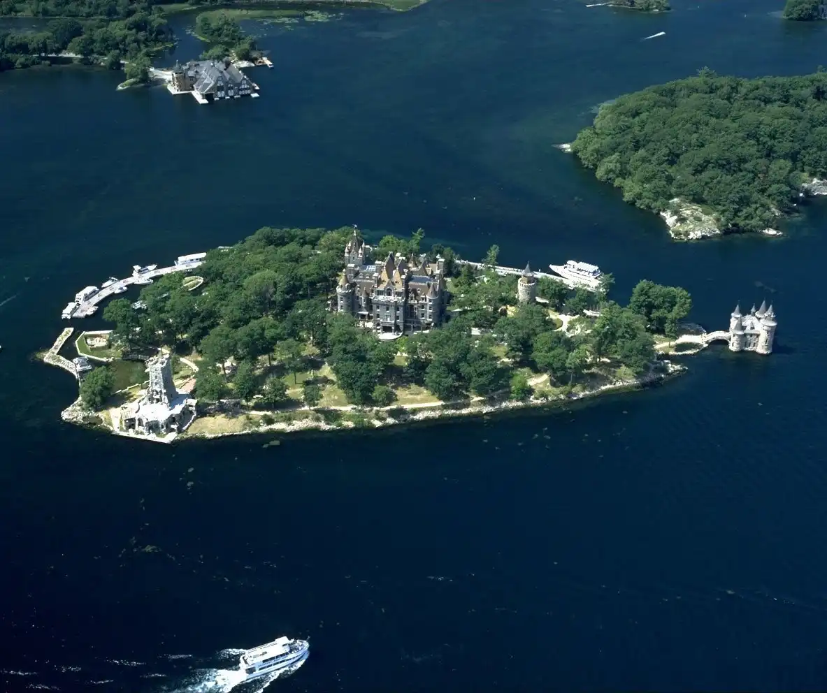 Он так сильно ее любил, что готов был ради нее на любые подвиги. Купив один остров, называвшийся Dark (“Темный”, “Мрачный”), он переименовал его в Heart Island и принялся возводить на нем для своей возлюбленной супруги замок по образцу прусских, средневековых.
