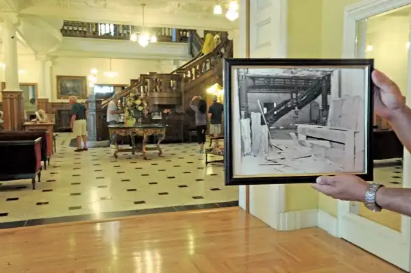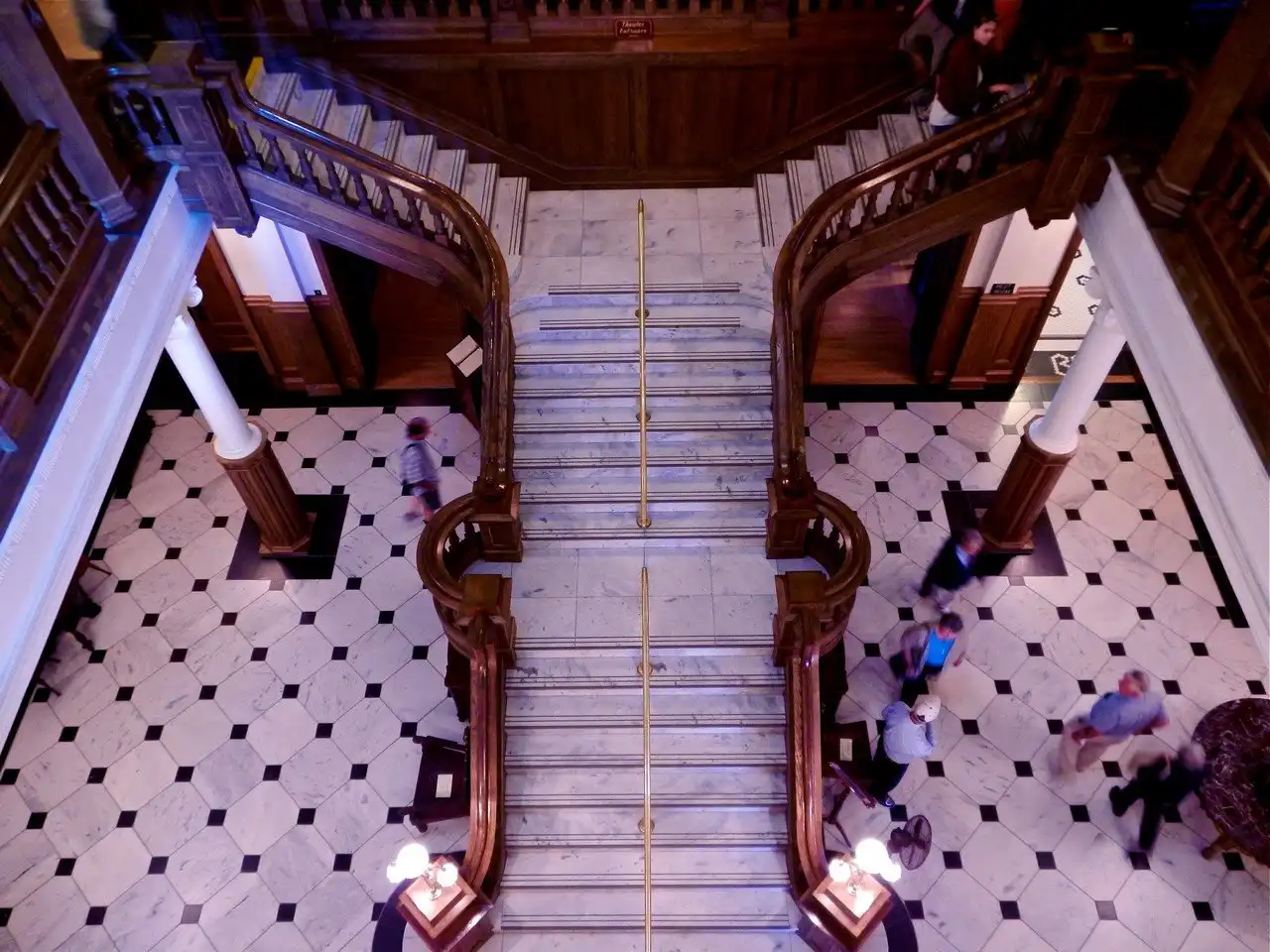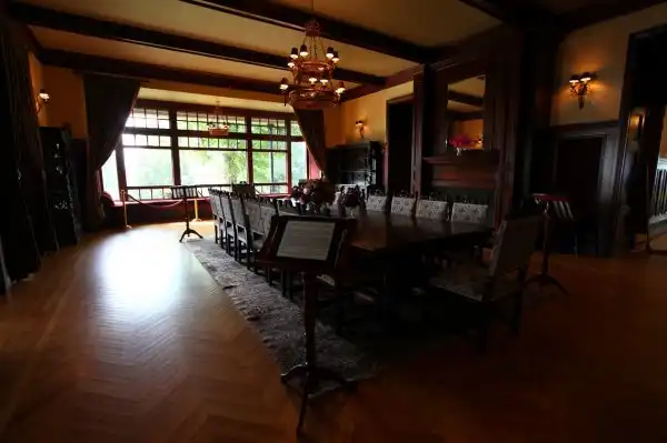 Вокруг центрального атриума (на уровне первого этажа) расположены пять главных помещений: приемная комната, библиотека, столовая, бильярд и комната для организации балов. Другие, открытые для публики помещения, находятся в подвале, это бассейн, и на пятом этаже специальный зал для распивания чая, который выходит на террасу крыши.