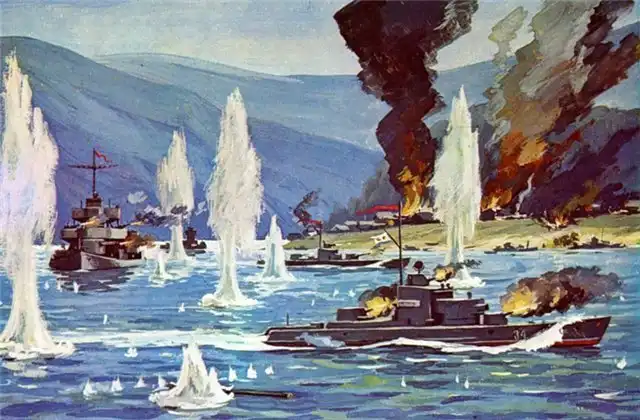 Бронекатера вели огонь с небольших дистанций прямой наводкой, подавляя вражеские огневые точки на набережной.
