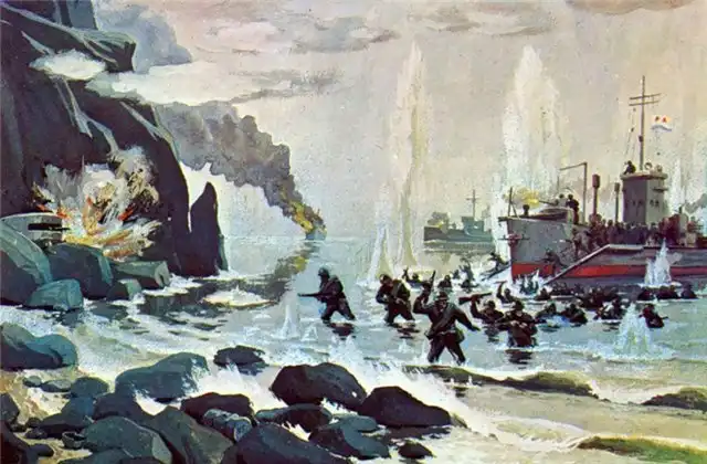Несмотря на ожесточенное сопротивление противника, штурмовая рота овладела небольшим плацдармом, примыкающим к урезу воды. Вслед за ней с монитора «Сун Ят-сен» (командир - капитан 3 ранга В. Д. Корнер) был высажен 3-й батальон 364-го стрелкового полка. Десантники к 9.00 овладели прибрежной полосой участка высадки и стали продвигаться в глубину обороны противника.