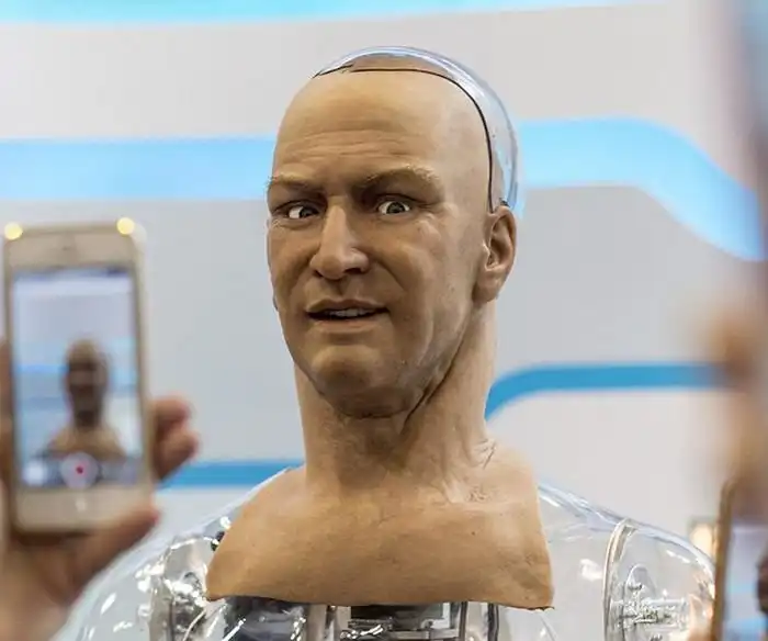 В Гонконге на выставке электроники Global Sources американская компания Hanson Robotics представила невероятно реалистичного робота, которого разработчики зовут Хэмом. Андроид реагирует на мимику человека, устанавливает с ним зрительный контакт, может поддерживать беседу, следит за перемещением своего собеседника и сам повторяет некоторые мимические движения человека. Робот покрыт специальной оболочкой, напоминающей кожу. Работу над Хэмом его создатель Дэвид Хэнсон продолжит в Гонконге, куда он перебрался после того как нашел партнеров для дальнейшего развития своего проекта.