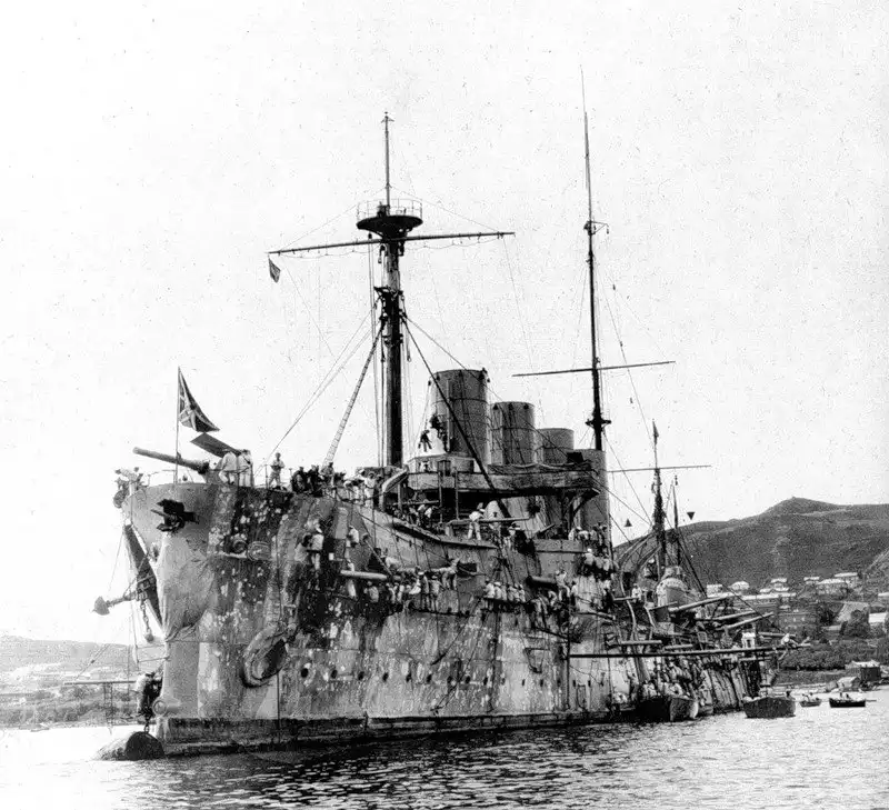 Броненосный крейсер Громобой в 1904 г (справа — Россия)