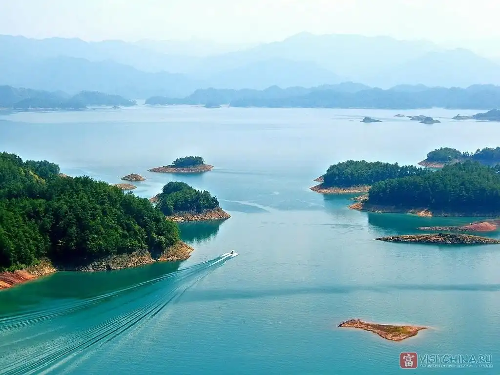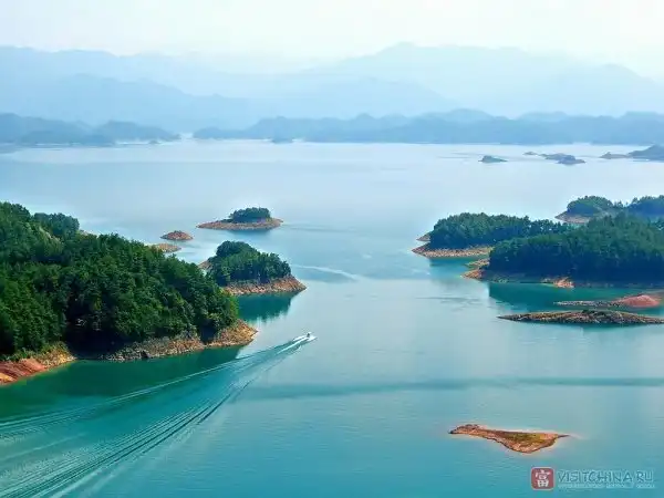 Свистать всех на верх! Сейчас мы отправляемся в Китай, в провинцию Чжецзян к озеру Циндао (кит. 千島湖) . Сразу нужно сказать, что оно искусственного происхождения, в частности эта красота была сформировано в результате строительства гидроэлектростанции в 1959 году. Когда дамба была полностью построена, образовалось водохранилище, площадь которого 573 кв.километра.