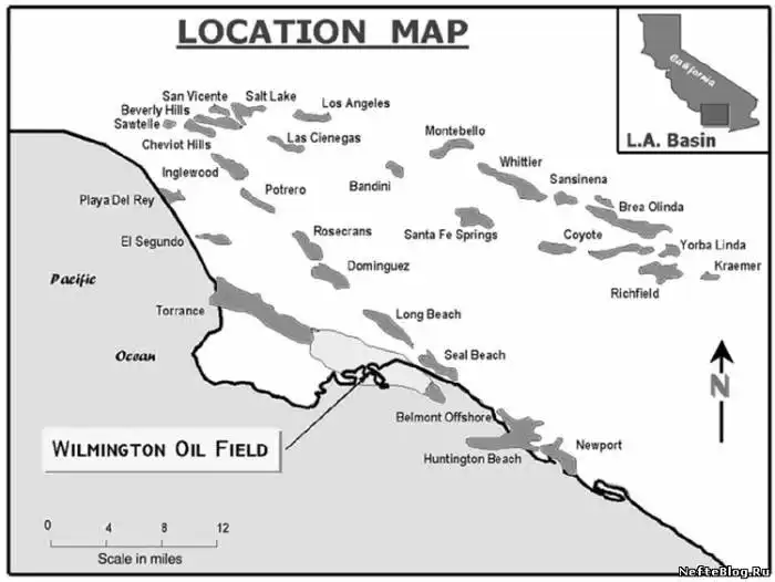 Месторождение протягивается через юго-западные районы города Лос-Анджелеса и через залив Лонг-Бич доходит до прибрежных кварталов одноименного курортного города. Площадь нефте-газоносности 54 км2 . Месторождение было открыто в 1936 году, а уже в 1938 году стало центром нефтедобычи Калифорнии. К 1968 году из недр было добыто почти 160 млн. тонн нефти и 24 млрд. м3 газа, всего же надеются получить здесь более 400 млн. тонн нефти.