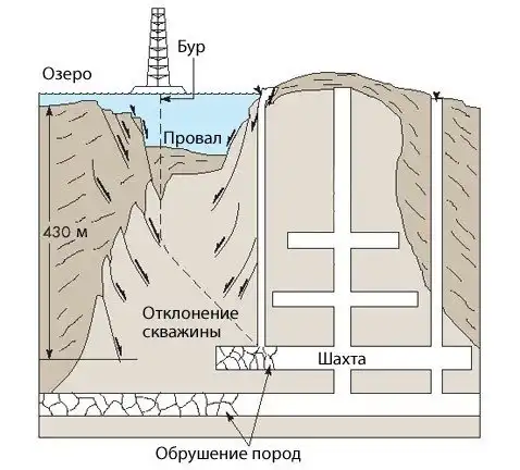 Инженеры-геологи исследовали недра и попытались определить: куда мог подеваться миллион кубометров воды. Исчезнувшее озеро обнаружили на стометровой глубине. Вода ушла под землю через трещину на дне водоема.