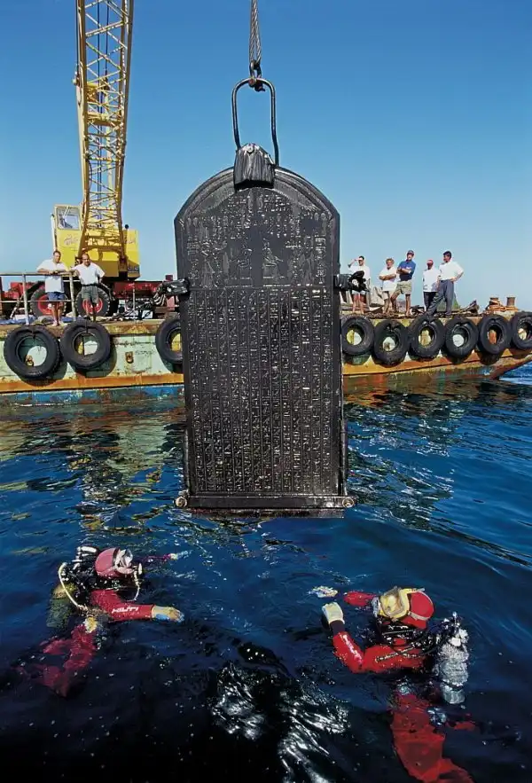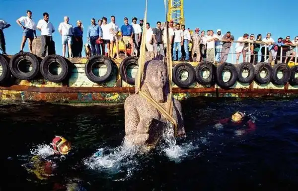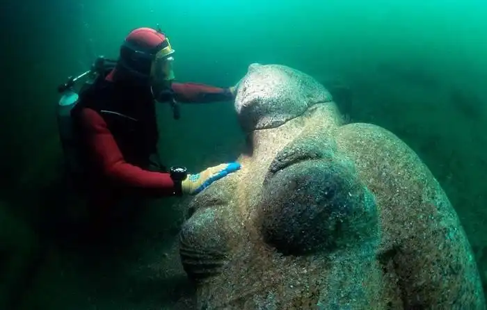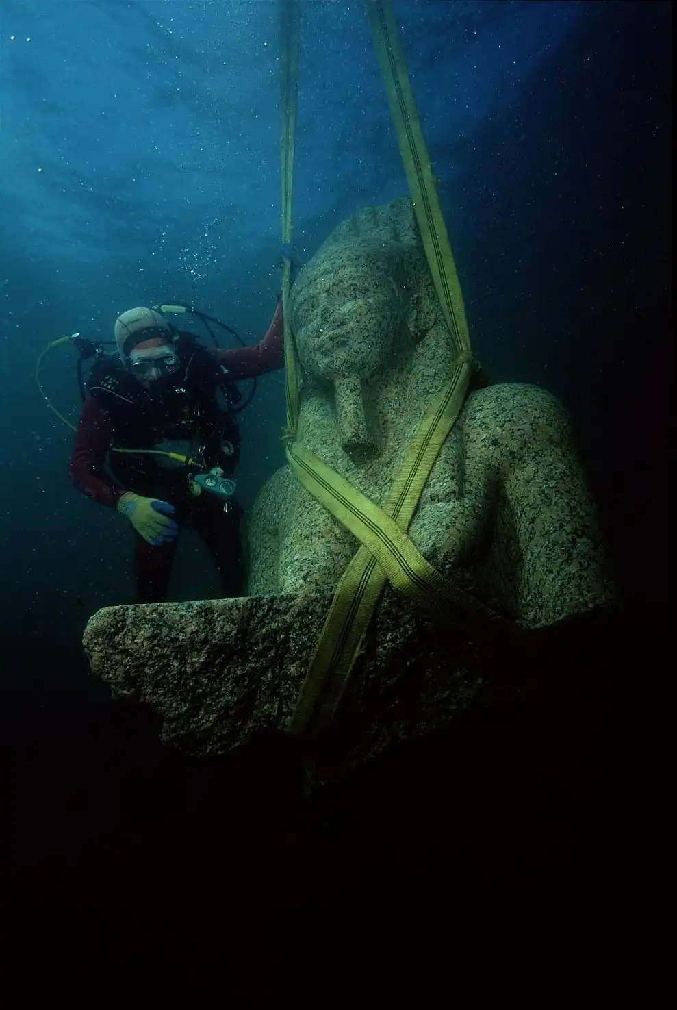 Археологи под руководством Фрэнка Годдио, основателя Европейского института подводной археологии в Париже, объявили, что обнаружили на дне моря развалины древнего города, его пристани, храмы, статуи греческих богов, жилые дома… Открытие произошло случайно, когда археологи участвовали в поиске и подъеме затонувших кораблей наполеоновского флота, потопленных в 1798-м году британцами во главе с адмиралом Нельсоном.