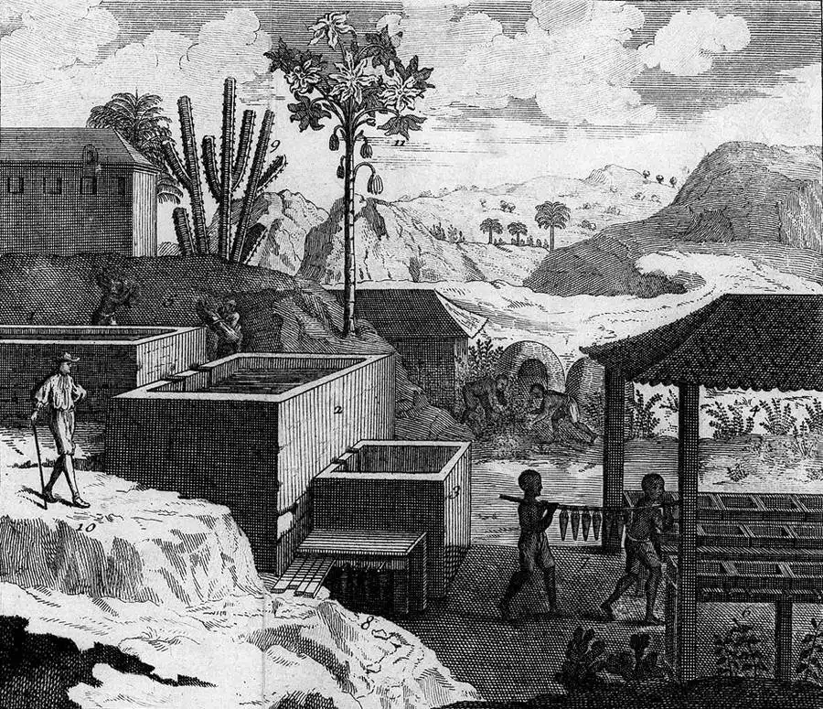 Рабы на производстве растительной краски индиго (Французская Вест-Индия, 1760-е годы)