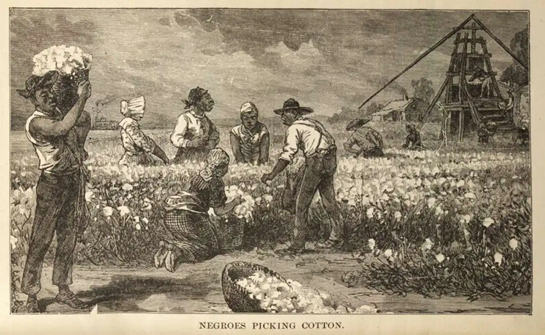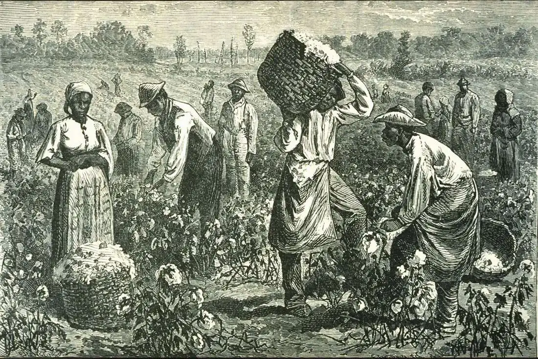 Рабы на сборе хлопка (Юг США, 1873 год)