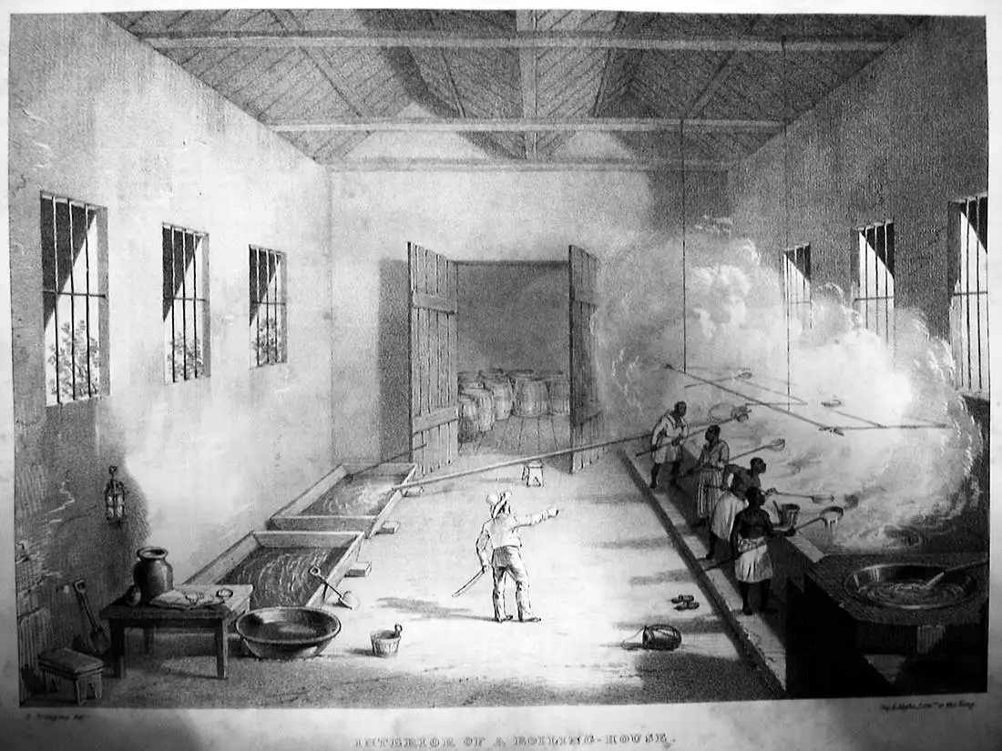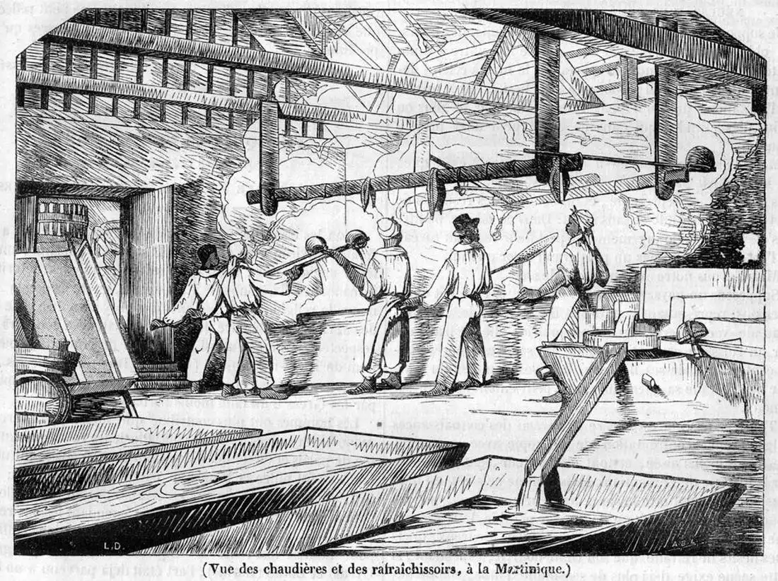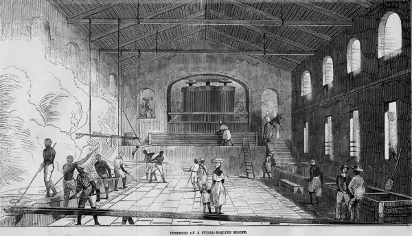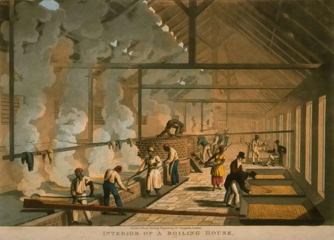 Процесс производства сахара (Британская Вест-Индия, 1840-е годы)