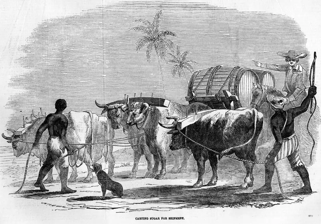 Перевозка бочек с произведенным сахаром (Британская Вест-Индия, 1840-е годы)