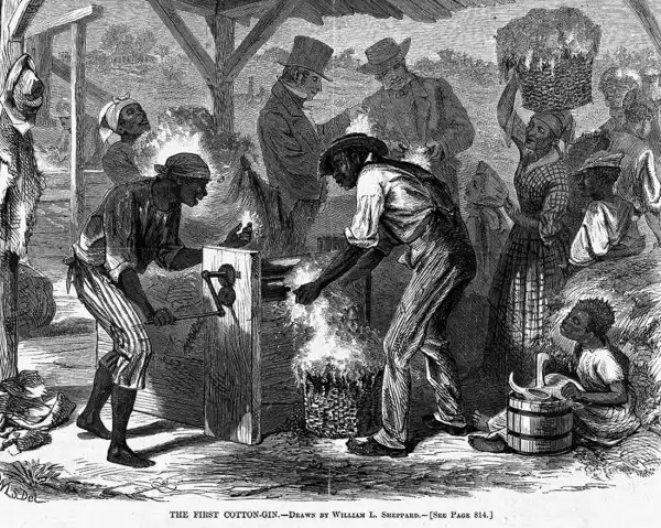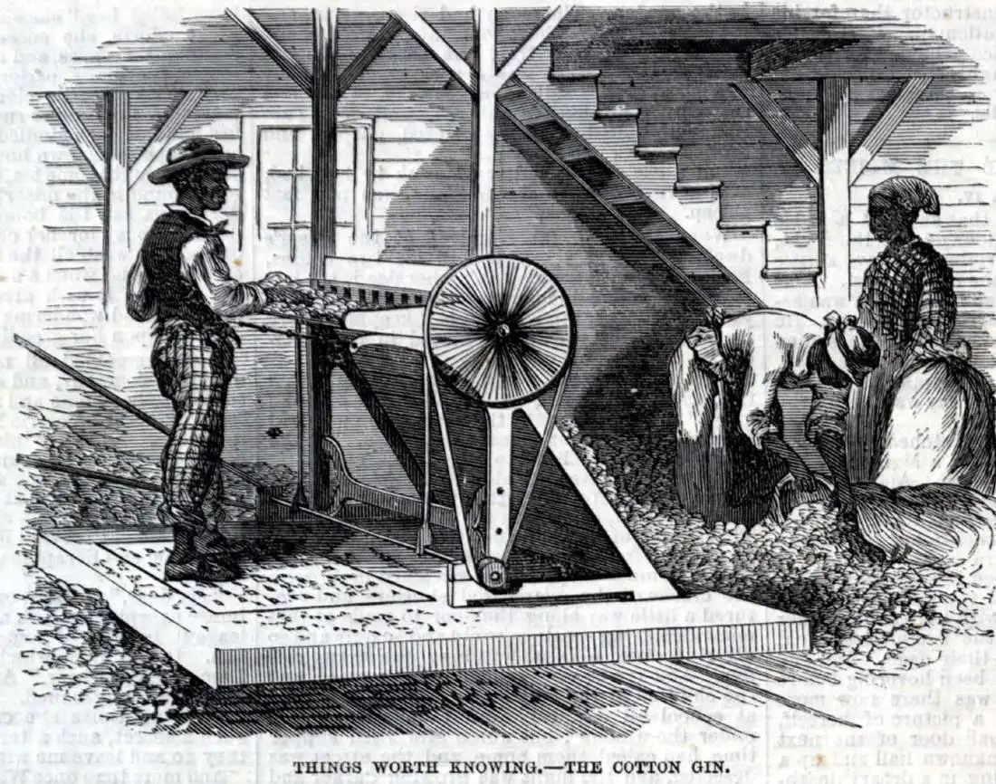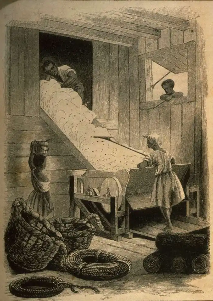 Переработка хлопка в цеху (Юг США, 1850 год)