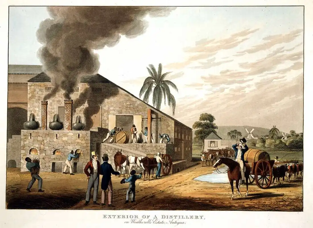 Рабы и завод по изготовлению рома (Антигуа, 1823 год)