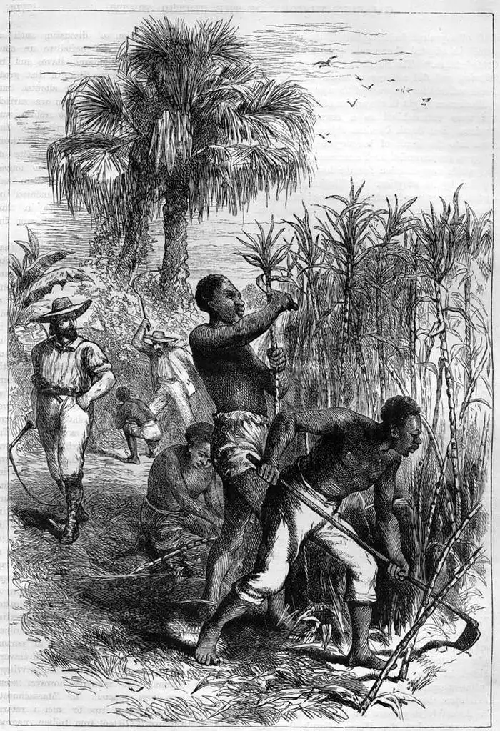 Рабы на плантации сахарного тростника (Гайана, 1870-е годы)