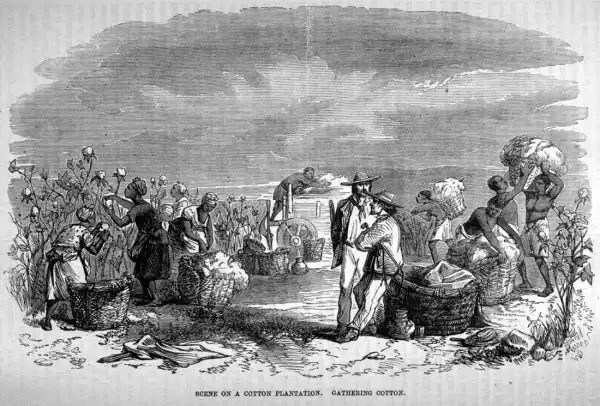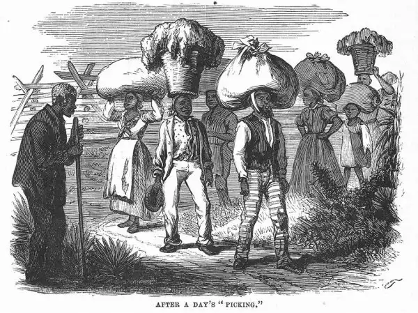 Рабы на уборке хлопка (Юг США, 1850 год)