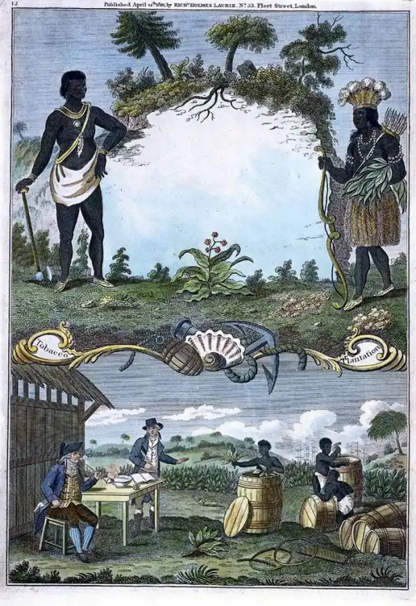 Рабы занимаются доставкой высушенного табака в порт (штат Калифорния, 1755 год)