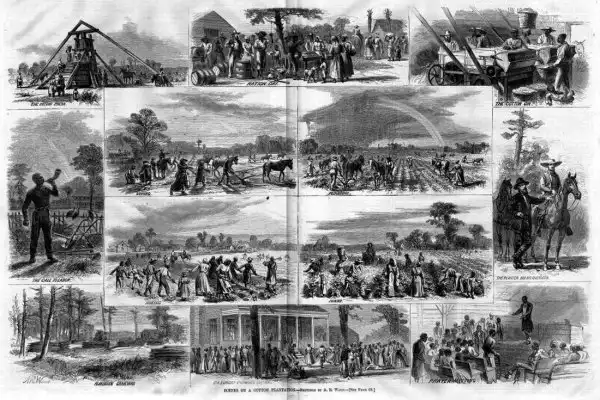 Труд рабов на хлопковой плантации (Юг США, 1861 год)