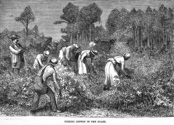 Рабы занимаются сбором хлопка (штат Джорджия, 1858 год)