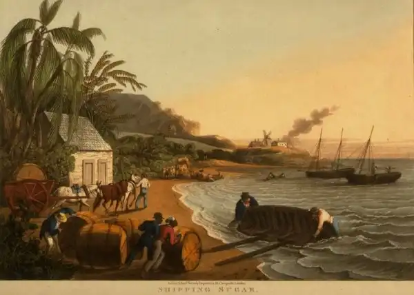 Погрузка бочек с сахаром на торговые суда (Антигуа, 1823 год)