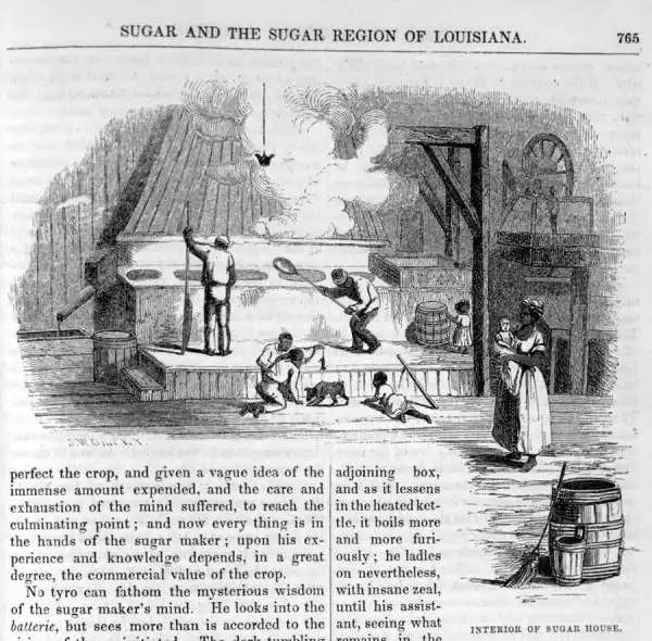 Труд рабов в цеху по переработке сахарного тростника (штат Луизиана, 1853 год)
