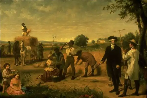 Джордж Вашингтон наблюдает за трудом североамериканских чернокожих рабов (художественное изображение, созданное в 1851 году)