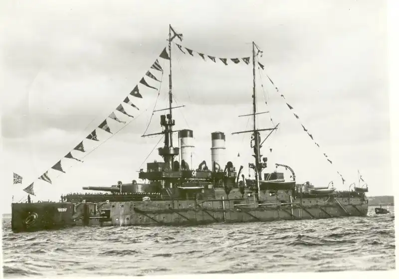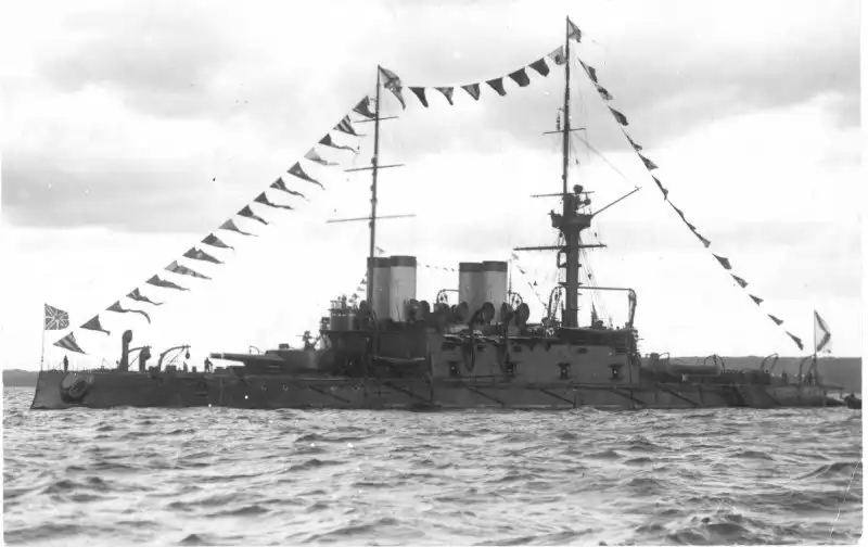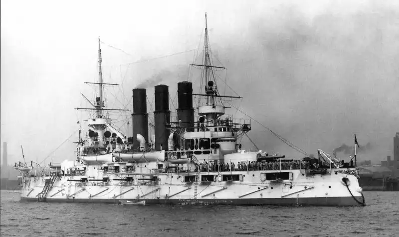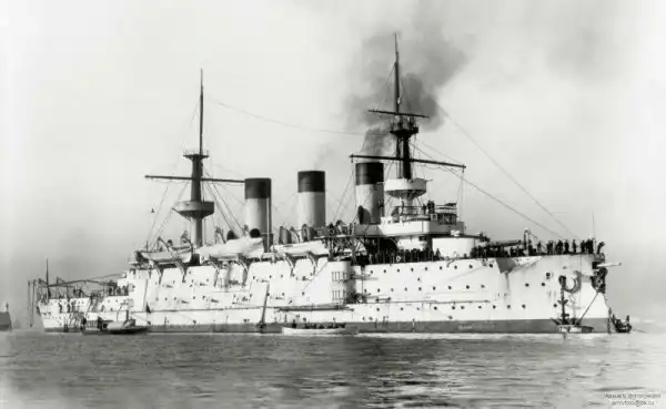 Эскадренный броненосец «Сисой Великий» в белой «средиземноморской» окраске.