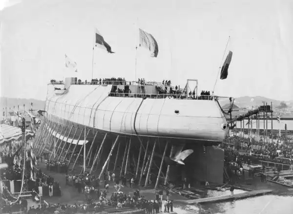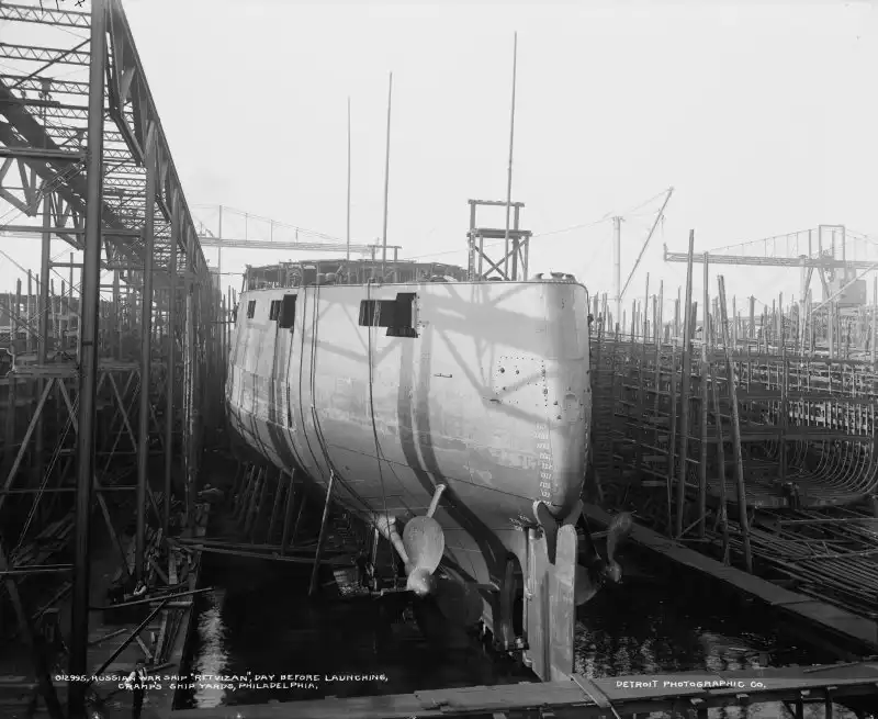 Корпус «Ретвизана» перед спуском на воду, Филадельфия, 9 октября 1900 г.