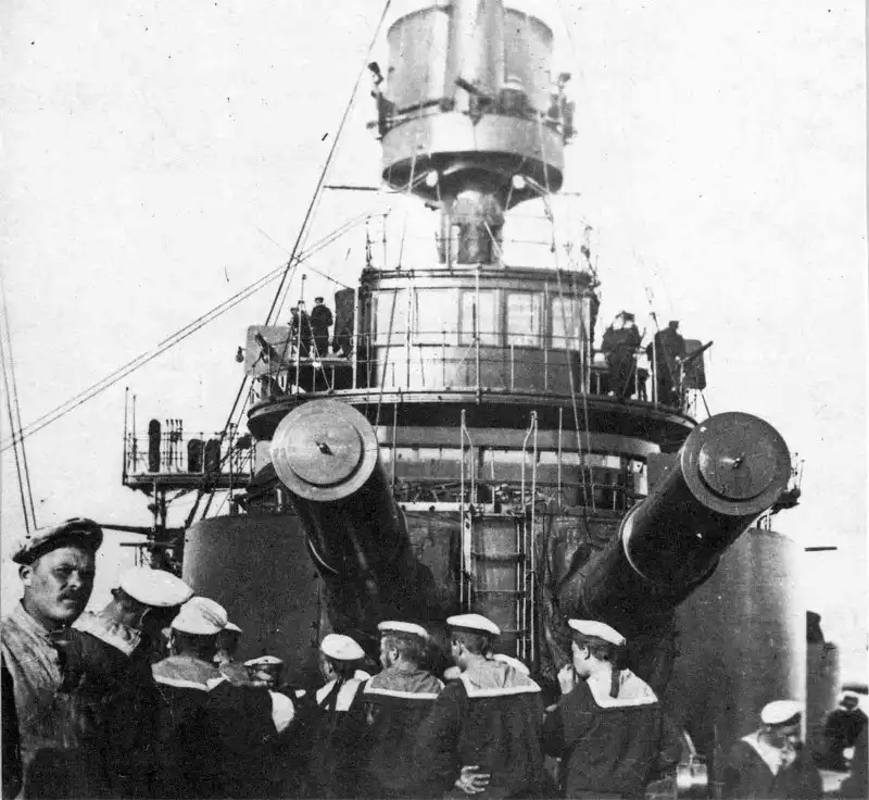 305-мм и 152-мм орудия на броненосцах типа «Бородино» были размещены в двухорудийных башнях