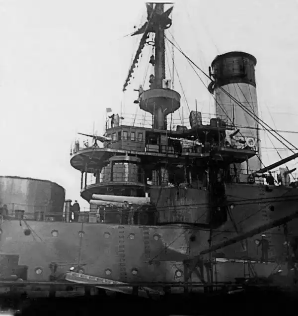 «Цесаревич» в Циндао, август 1904 г. Хорошо видны повреждения