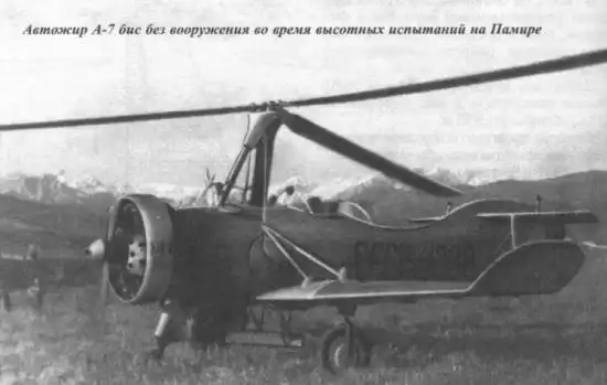 Летные испытания винтокрыла А-7 начались летом 1934 года, а весной 1937 года они были продолжены уже на А-7бис. Проведенные испытания и последующая доводка автожира стали фундаментальной основой для последующего развития винтокрылых машин.