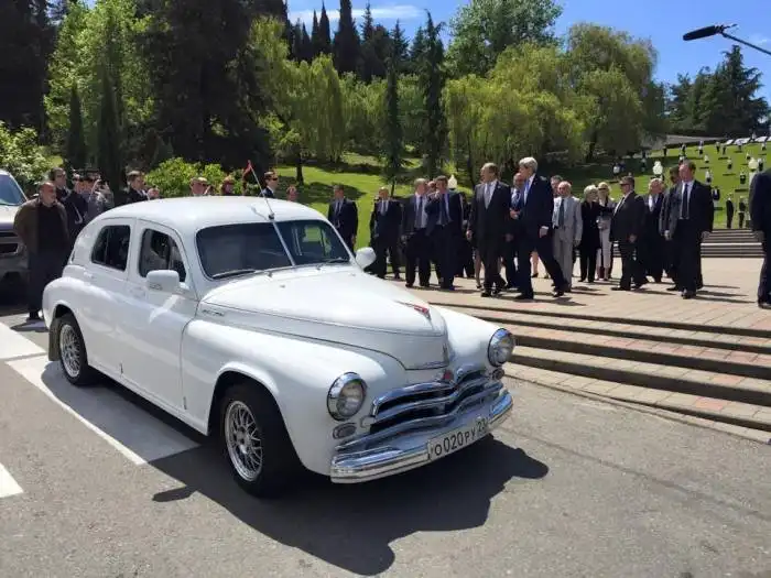 На встречу Сергей Лавров приехал на белоснежном отечественном раритетном автомобиле ГАЗ-20 «Победа».