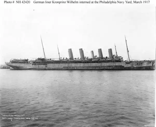 Через несколько часов после прибытия лайнера в Ньюпорт-Ньюс, германское имперское посольство обратилось к американской стороне с просьбой отремонтировать лайнер на верфи в Норфолке и вернуть его Германии. Естественно, просьба была отклонена, а лайнер – интернирован. «Кронпринца» перевели на верфь в Филадельфию и поставили на прикол рядом с другим пароходом «Северогерманского Ллойда», «Принц Эйтель Фридрих».