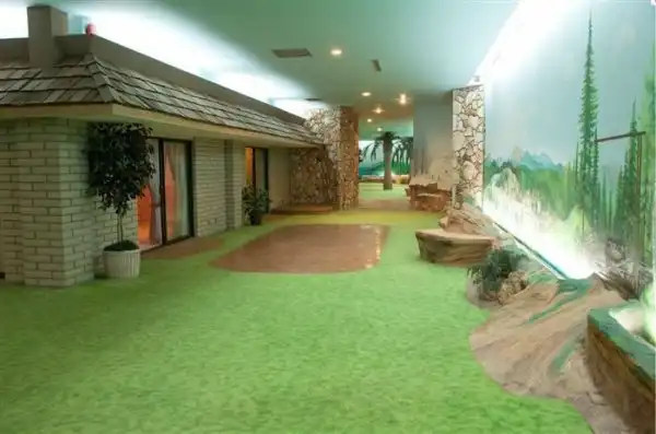 Вряд ли в этом доме у вас разовьётся клаустрофобия, несмотря на глубину, на которой он располагается. Освещение в этом обширном подвале меняется в зависимости от времени дня, а потолок создаёт эффект голубого неба с белыми облаками.