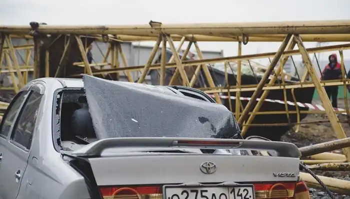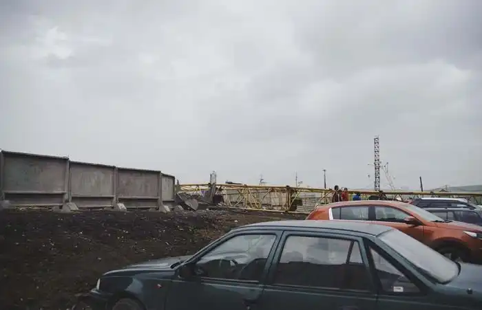 На одной из строек в городе Кемерово из-за порывистого ветра упал башенный кран. На момент падения в кабине находилась 54-летняя женщина-крановщик, которая от полученных травм скончалась на месте. Кран упал прямо на кабину, она сильно деформировалась, что затруднило работу спасателей, извлекавших тело крановщицы. В результате аварии также пострадали припаркованные машины и стена жилого дома.