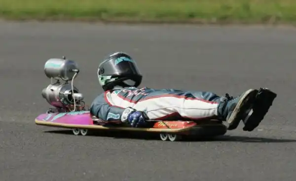 Для тех, у кого напрочь отсутствует чувство самосохранения, подойдет уличный санный спорт на необычных санях с реактивными двигателями. Летние сани (по сути обычная доска на роликах) оснащены турбиной, выдающей 90 000 оборотов и имеющей тяговое усилие в 37 кгс. Одному из экстремалов в 2007 году удалось разогнаться на них до 180 км/ч . Но это ничто по сравнению с тем, что собирается сделать австралийская команда Daz Fellows — они хотят достичь скорости в 480 км/ч.