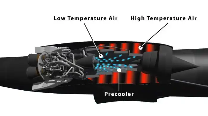 Ключевая особенность системы двигателя SABRE, разработку которого ведёт аэрокосмическая компания Reaction Engines Limitedявляется, состоит в наличии устройства предварительного охлаждения. Эта технология позволяет охлаждать воздух, поступающий в двигатель, более чем на 1000 градусов по Цельсию за 0,01 секунды. Это позволит двигателю работать на гораздо большей мощности, чем это возможно в настоящее время.