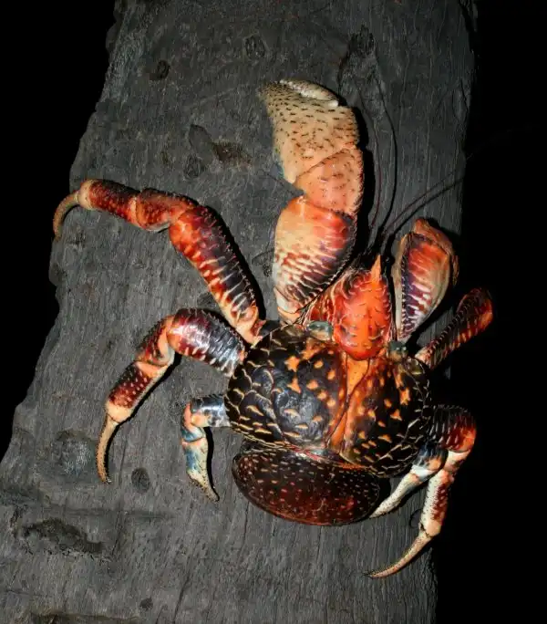 И хоть версия о том, что своими передними клешнями рак способен расколоть кокосовый орех, с треском провалилась, его конечности, тем не менее, достаточно развиты для того, чтобы проворно взобраться по стволу пальмы или откусить человеку фалангу пальца. А к кокосовым орехам рак действительно неравнодушен: питательная мякоть – главное блюдо в его меню, которому он и обязан своим «кокосовым» названием.
