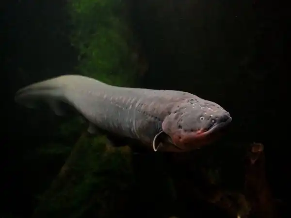 Средняя длина взрослого электрического угря метр-полтора, хотя иногда встречаются и трехметровые экземпляры. Весит такая рыбка порядка 40 кг. Тело у нее удлиненное и немного сплющенное с боков. Собственно, на рыбу этот угорь не очень-то и похож: чешуи нет, из плавников только хвостовой да грудные, и плюс ко всему дышит он атмосферным воздухом.