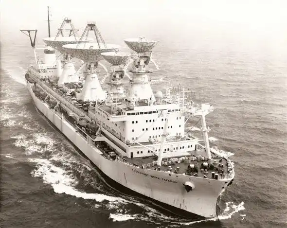 Еще одна параболическая антенна имела существенно меньший диаметр – 2,1 метра и была конструктивно объединена с одной из 25-метровых антенн, ее основным предназначением был поиск сигналов. Все антенны могли сопровождать космические аппараты по заранее рассчитанной программе или по приходящим от них радиосигналам. Система управления антеннами нормально функционировала при волнении моря до 7 баллов и скорости ветра до 20 м/с. Управлять полетом космических кораблей и спутников с борта «Юрия Гагарина» можно было самостоятельно, посылая на них временные программы и команды. Возможен был и другой режим работы – ретрансляция команд, поступающих на корабль из ЦУПа. Данные траекторного контроля (радиальная скорость и дальность), а также результаты телеметрии подвергались на корабле машинной обработке, после чего отправлялись в ЦУП.
