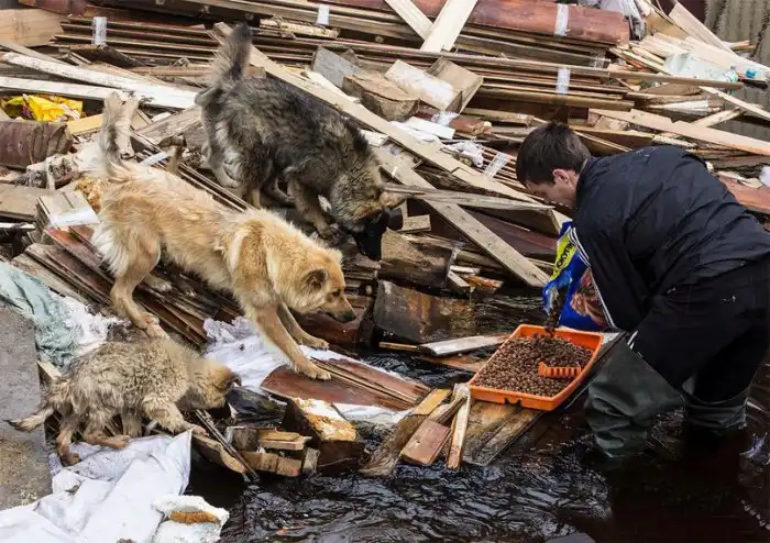 После наводнения в Нижневартовске, когда затопленными оказались сотни частных домов и дачных участков в пригороде города, брошенными на произвол остались многие животные. В подобных ситуациях о братьях наших меньших думают в последнюю очередь, оно и понятно, ведь первым делом необходимо спастись самому, а еще успеть прихватить какие-то ценности. Но, как оказалось, среди нас есть и те, кто остается человеком даже в экстренной ситуации. Такие люди ждут вас на фото.