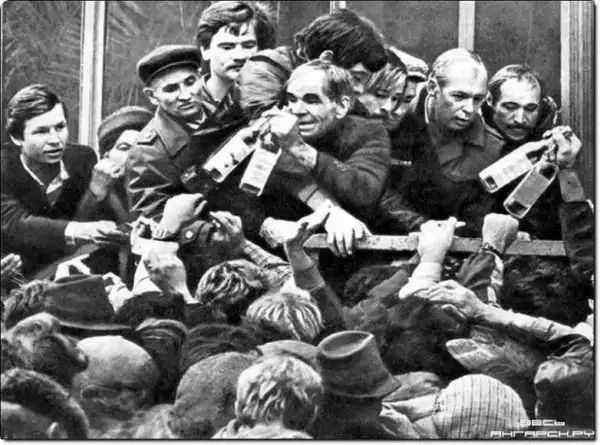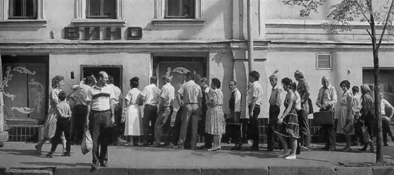 Многочасовые очереди за алкоголем в рабочее время также не способствовали подъёму падающей экономики