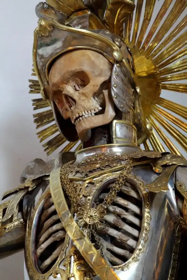 В 1578 году Римская католическая церковь приняла решение вскрыть гробницы первых христиан, и найденные там скелеты, кости и черепа передала разграбленным протестантами храмам в Германии и Австрии. Священники наряжали останки святых в дорогие одежды и украшали золотом и камнями. Американский доктор Пол Кудонарис сделал снимки этих катакомбных святых.