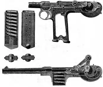 3. «Борхардт» в одну секунду разряжен, а «Маузер» можно разрядить только выстрелами или открыть затвор и высыпать патроны в руку по очереди, действуя затвором обоймы, нужной, однако же, для нового заряжания уже нет».