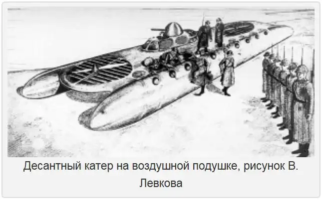 В это время английский инженер Кокерелл лишь начинал свои первые опыты с простейшей моделью аппарата на воздушной подушке. Только в 1959 году он построил громоздкую «летающую платформу», которая преодолела пролив Ла-Манш.